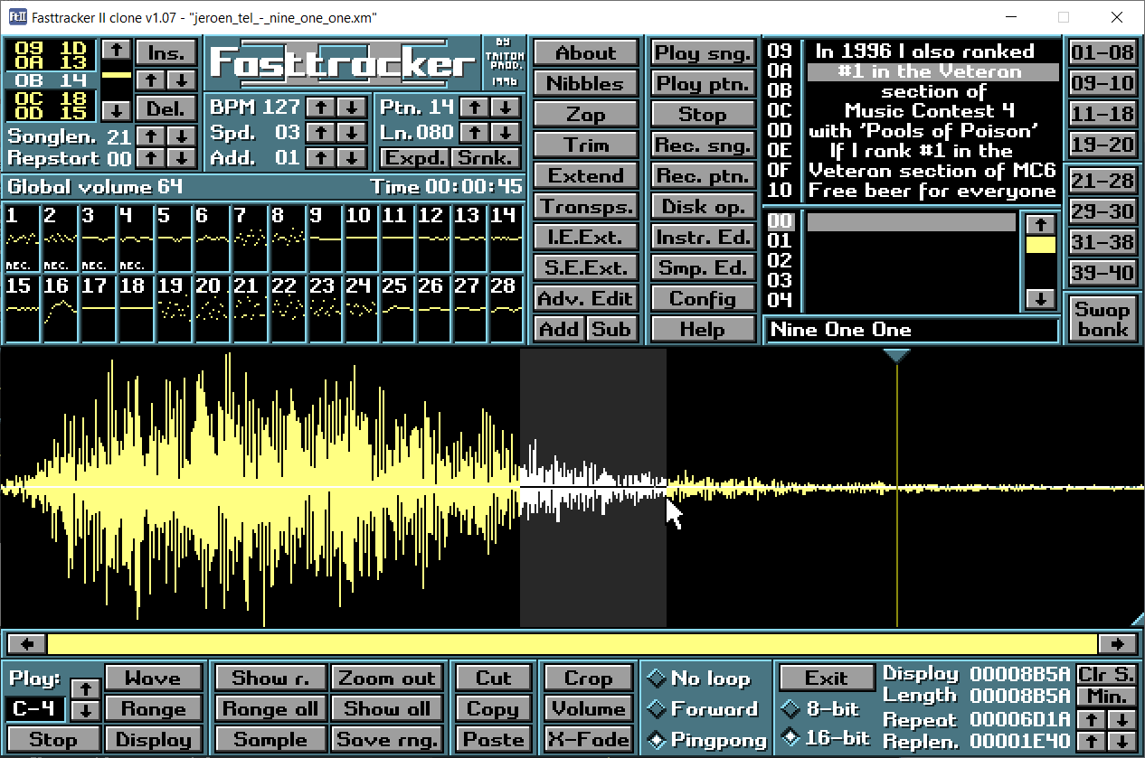 Aims to be a highly accurate clone of the classic Fasttracker II software for MS-DOS.