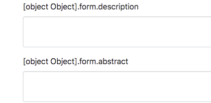 The i18n labels on edit collection and community pages are based on the resource type. It used to be a string, but was changed in to an object recently causing the i18n labels to break: