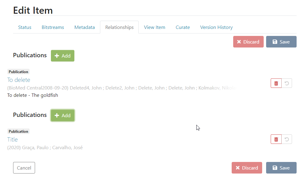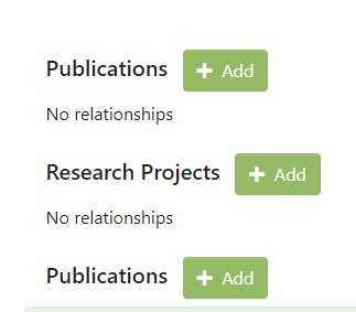 In the edit relationships tab, an add button was added next to each relationship type header that will open a modal similar to the one used in the submission that allows you to search for related entities of that type.