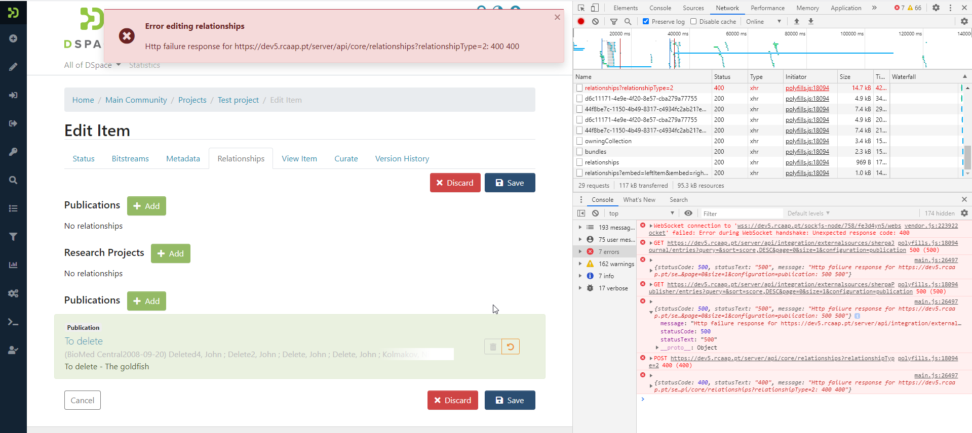 I can't edit the relation, I'm getting an error: