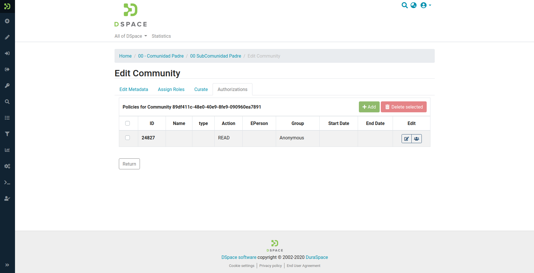 authorizationstab in the community edit pageadded a new