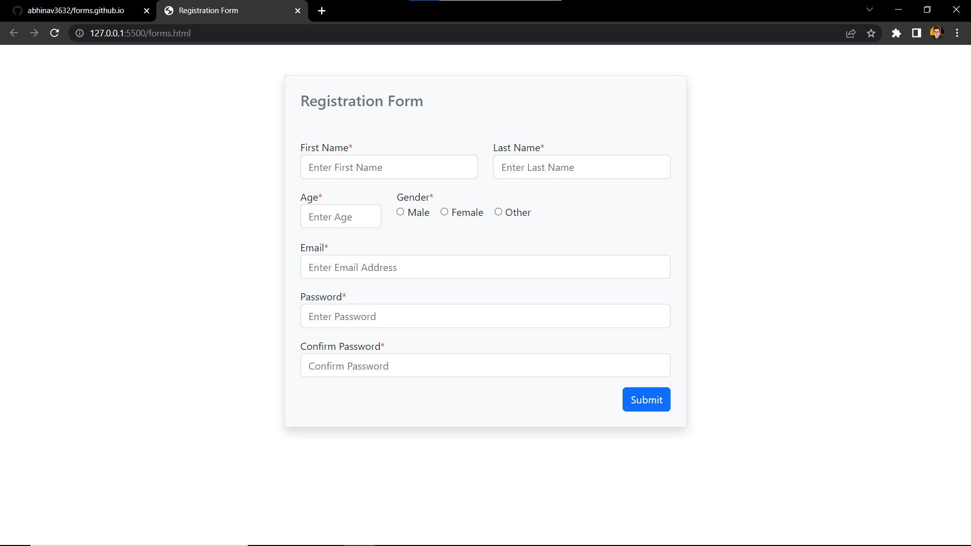 Simple Registration/Sign-up form made using bootstrap