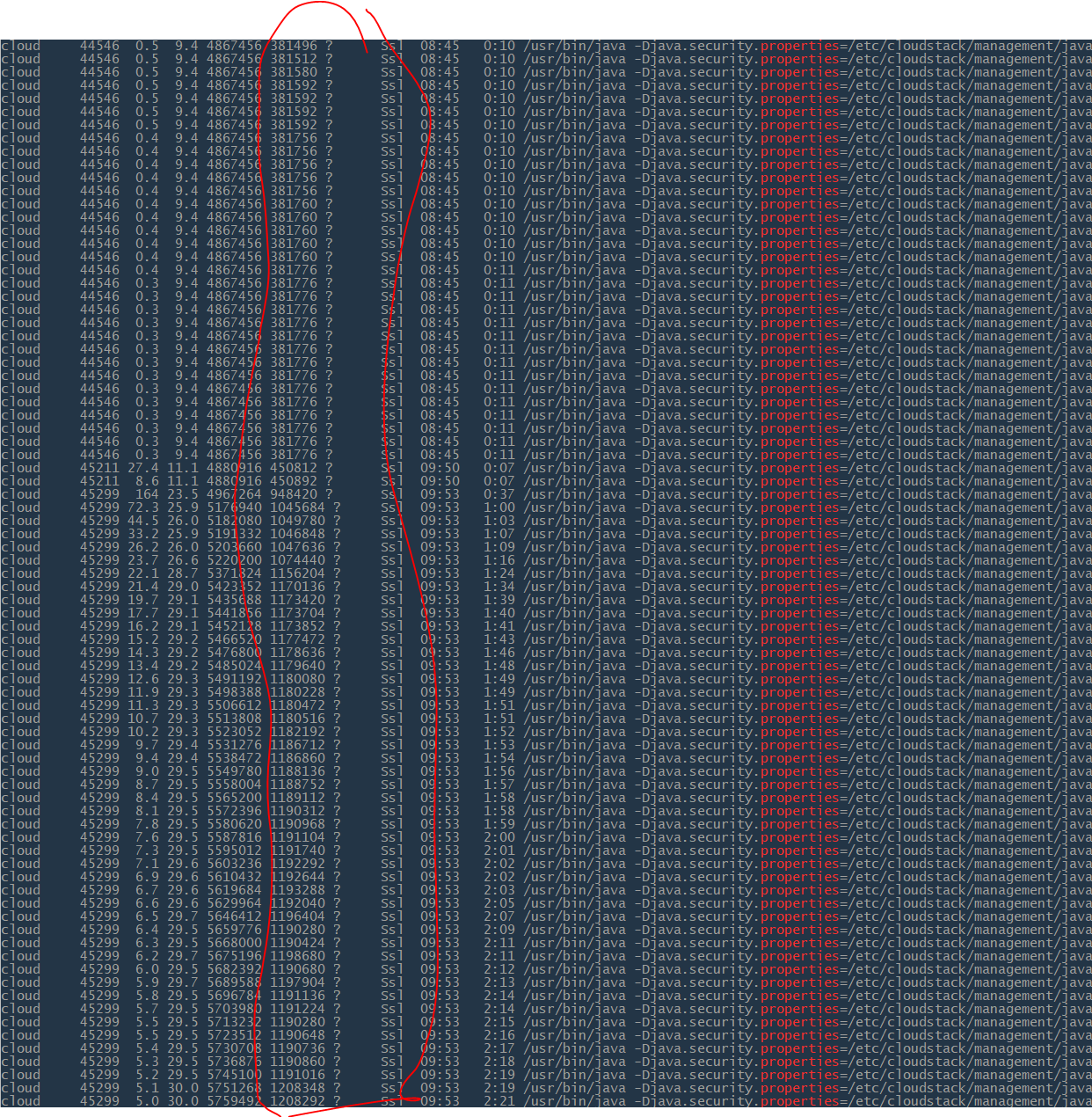 In Master, we have memory leak in the management server  Eventually, mgmt server will consume all free ram and cause server to swap etc.