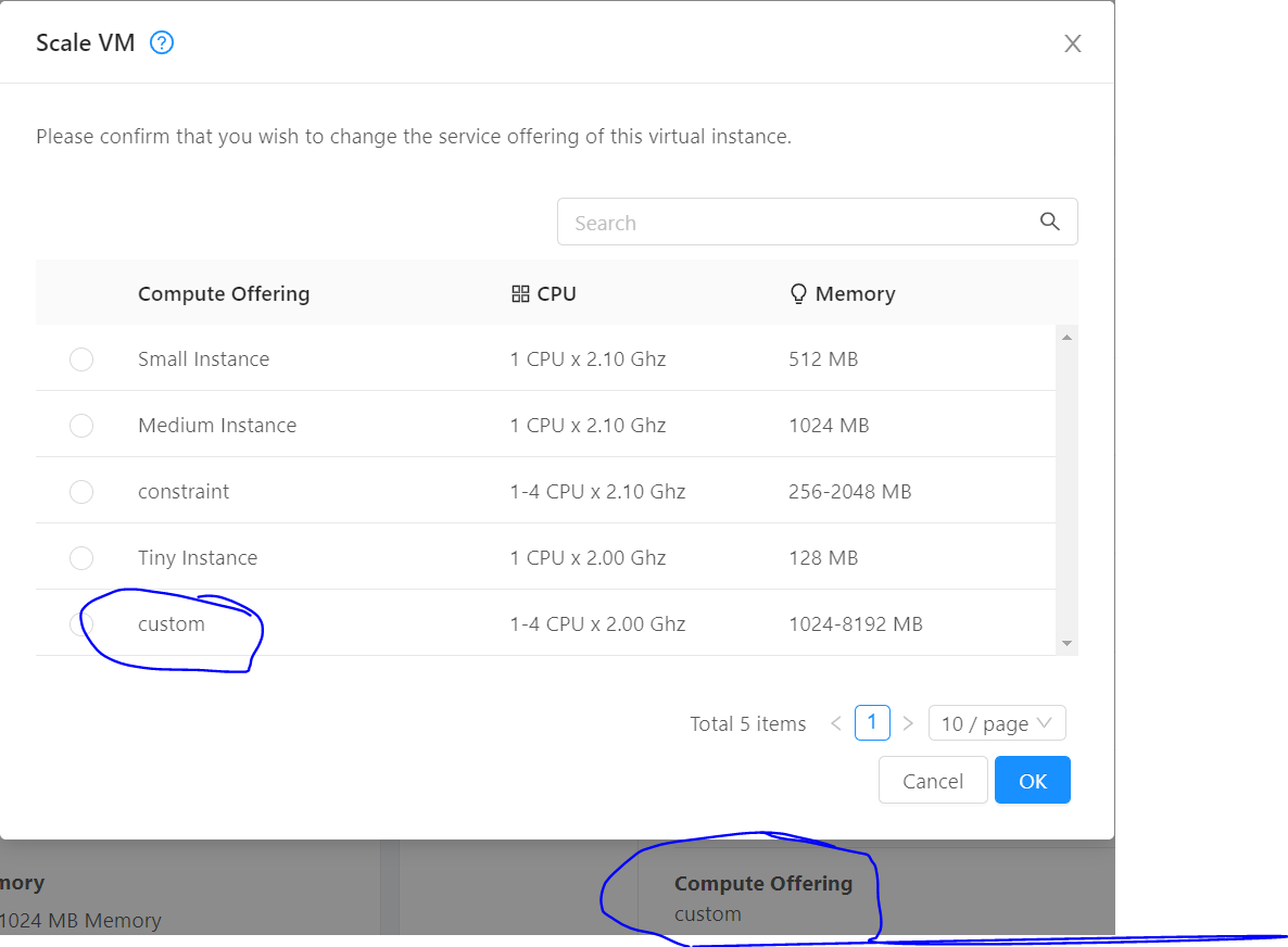 Tested, works well as it lists same custom offering for a stopped VM. After changes, |