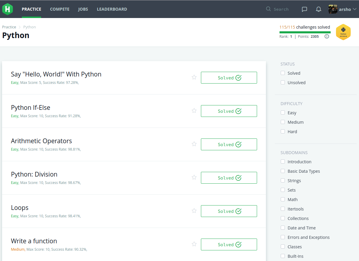 - Solutions of Hackerrank Python Domain challenges. The codes may give a head start if you are stuck somewhere!
