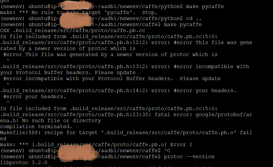 .build_release/src/caffe/proto/caffe.pb.h:23:35: fatal error: google/protobuf/arena.h: No such file or directory