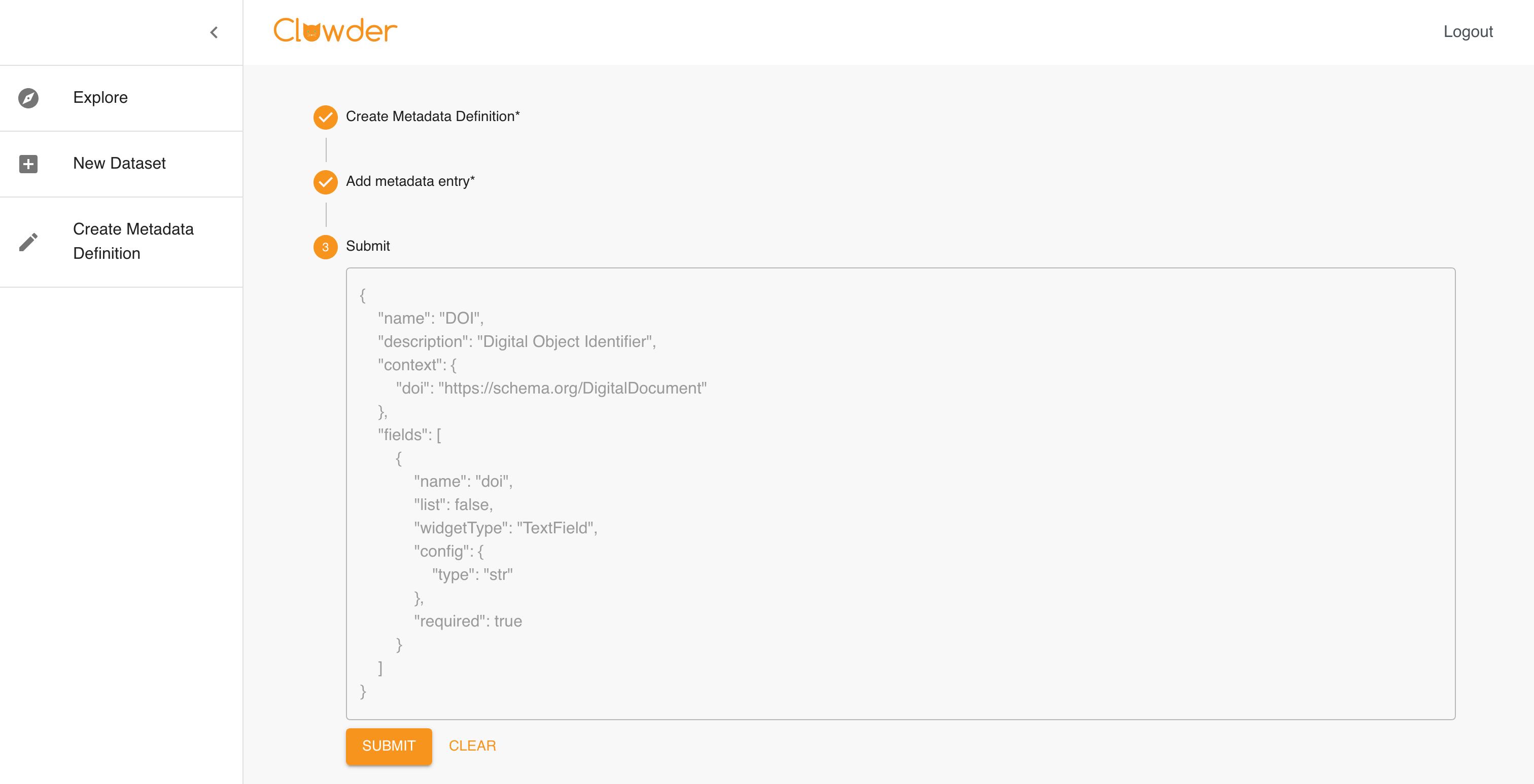 {"abstract": "http://purl.org/dc/terms/abstract"} - The first section header is capitalized, but the second is not. We should be consistent, maybe change to "Create metadata definitions"
