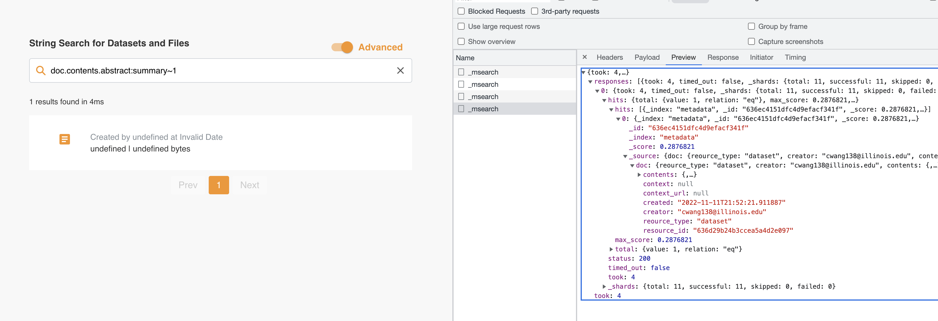 Could we index enough information about the file or datasets in the metadata index? If a user searches for metadata, they probbaly just want to see the file or dataset it belongs to. |