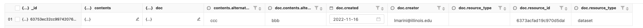 @lmarini I addressed the above issue. Great find, thanks! We don't need 'doc' while inserting record but need that while updating it. |