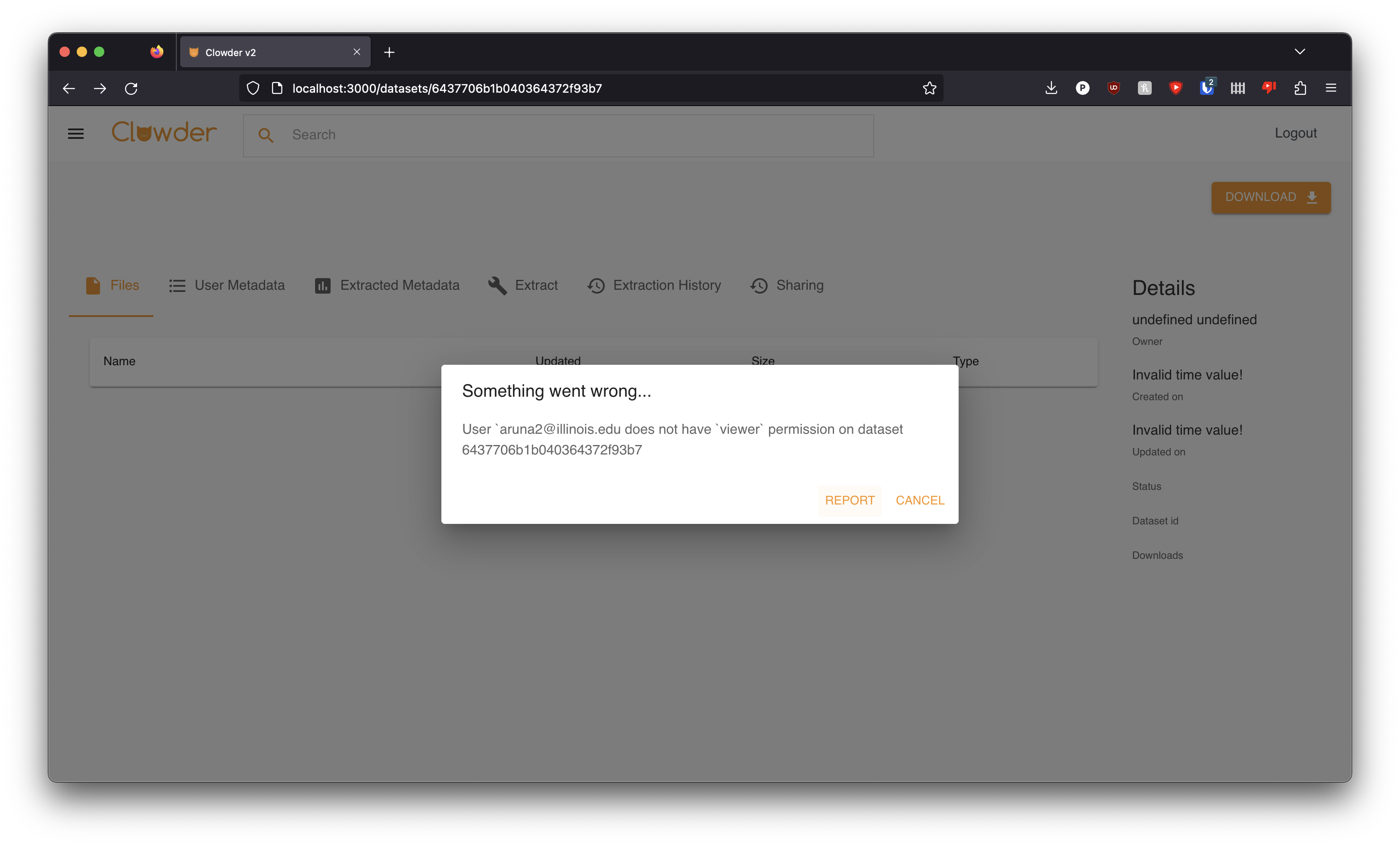 * import container (#462) * 446 gui to manage api keys (#465) * add new routes placeholder * add list and delete endpoint; inline docs * codegen and pytest * ugly ui? * onstart clear user keys * delete works but pytest doesn't work yet * pytest all works * codegen * redux * reducer and types * write the table * correctly wire in the apikey and error handling * wire in the delete modal of apikeys * wire in the creation api key * everything working in the gui * formatting --------- Co-authored-by: toddn <[email protected]> * Sharing tab cleanup (#430) * fix bug where users not being fetched * simplifying role query pt 1 * refactor tables and API calls * cleanup * start moving GroupAndRole to separate table * add expanding sub table * remove AddGroup buttons for now * formatting * codegen * add response model * codegen * remove container * fix bug with Roles return object and autocomplete on groups * codegen * Fix reload bug (#451) * 461 fix library version in pipfile (#468) * fix pipfile version * regenerate the piplock file * 443 frontend need to display more verbose backend error (#458) * Updated frontend error message to be more verbose * Backend returns verbose logs, frontend displays it as generic messages depending on the HTTP status code * Updated the error message logic to include original backend logs wherever possible * Fixed report button issue * Rootcause: The onClick event for the report button has a semantic error, which is causing the issue reason string to be replaced with an object * Also added encode for the reason * Fixing issue with error message * Revert "Updated frontend error message to be more verbose" This reverts commit 7d230d3. * Fixing issue with error message * 469 create profile page (#471) * profile page exists * new route for user profile profile page includes layout * codegen new route for get current user profile * we now get the profile, but nothing shows yet * page has fake data * we see the profile now * formatting * Implemented role delete in sharing tab (#472) * Tested by deleting a user, group. Verified entry is removed upon refresh * Show Creator on Group Page (#428) * the owner is visible, and we cannot change the owner in the table * showing group creator on top * creator link is wrong, need to fix * bold text for word 'creator' * using more conditionals to reduce duplicate code * missing modal added creator name matches other names --------- Co-authored-by: Chen Wang <[email protected]> * Fixed bug where error detail might be empty (#478) * Fixed bug where error detail might be empty * Added null check to the detail string to prevent errors when detail is not set * Second check to validate the body field * filter the option without group owner * filter group owner out * Made the updaterole function async, and added a call to fetch roles to refresh the list of roles in state * Updated remove role logic to automatically refresh the roles list * Executed eslint * remove _beanie * wire in folder db * download folder * refactored everything in file/folder * reformat * missed a spot * codegen * forget to add FileVersionDB * add await * fix more merge conflict * duplicate * fix inc * black fromat * codegen * fix inconsistency * black * fix frontend author/creator * fix detail * fix some of the async bug * download works * init & use TokenDB everywhere * fix files/submit endpoint * remove manual index creation * fix extractor submission --------- Co-authored-by: toddn <[email protected]> Co-authored-by: Max Burnette <[email protected]> Co-authored-by: Aruna Parameswaran <[email protected]> Co-authored-by: Todd Nicholson <[email protected]>