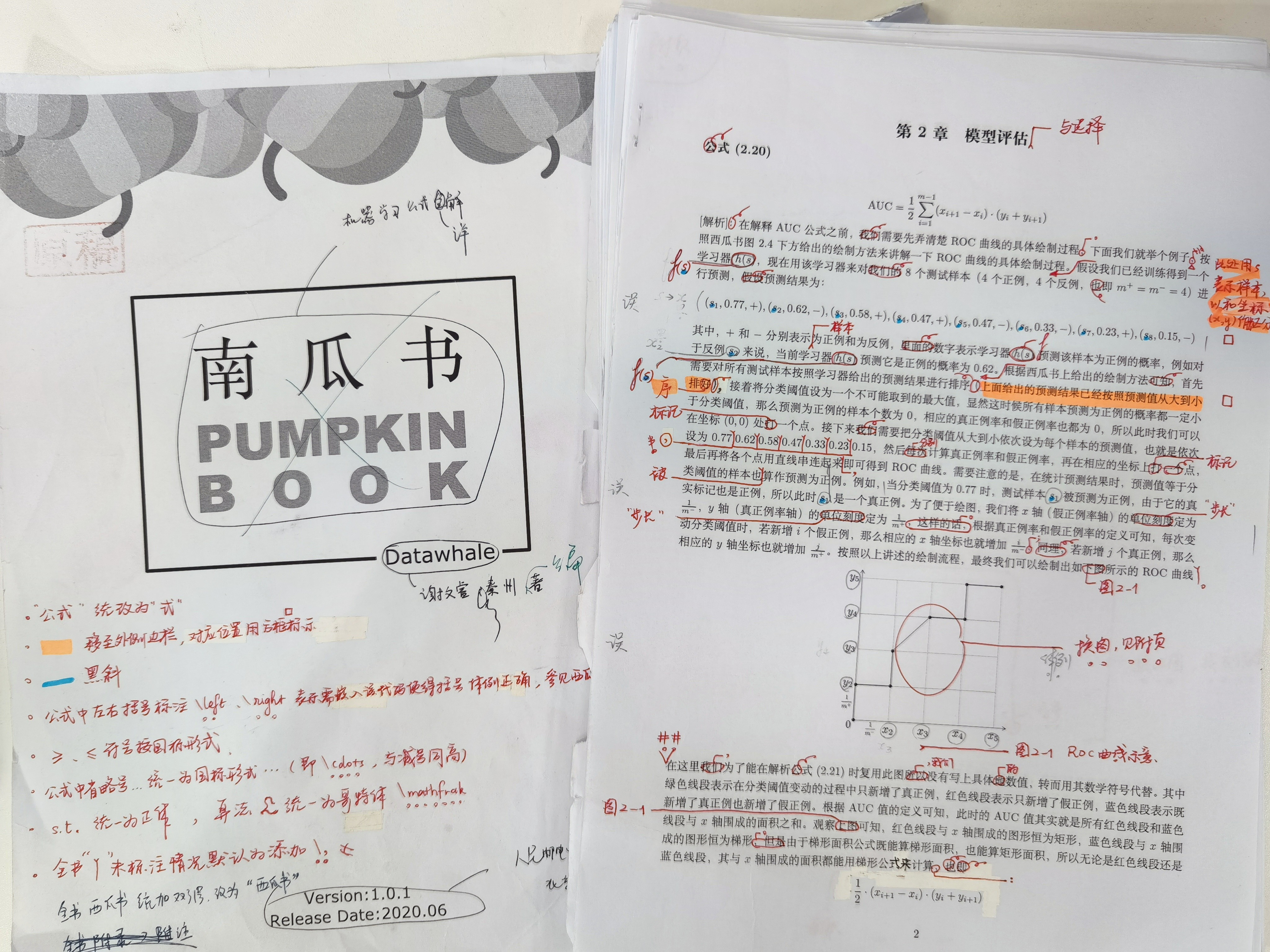 - 若南瓜书里没有你想要查阅的公式,或者你发现南瓜书哪个地方有错误,请毫不犹豫地去我们GitHub的Issues( 地址:https://github.com/datawhalechina/pumpkin-book/issues )进行反馈,在对应版块提交你希望补充的公式编号或者勘误信息,我们通常会在24小时以内给您回复,超过24小时未回复的话可以微信联系我们(微信号:at-Sm1les);