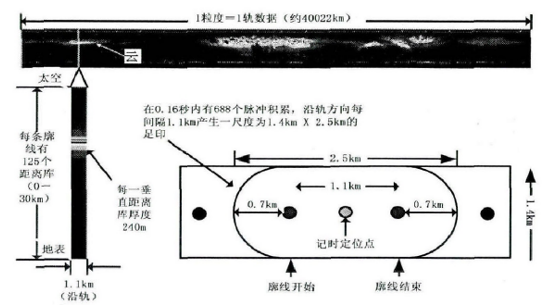 每个垂直剖面每隔 240m 就会获得一个扫描数据,从高空到地面一共可以获得 125 个不同高度上的数据,这也就是说它的垂直探测的高度是 30km 左右。