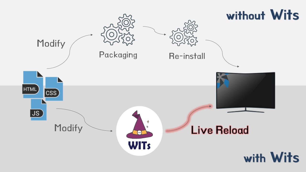 Using Wits, You can instantly RELOAD your app's JavaScript/CSS code instead of reinstalling your app every time you make a change.