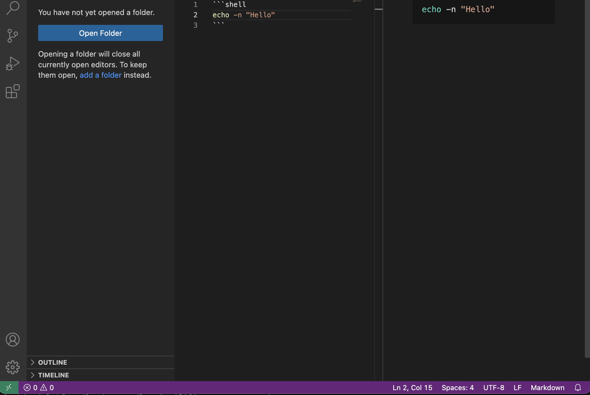 Fixes a bug while creating markdown for shell script. Attached the working change for reference.
