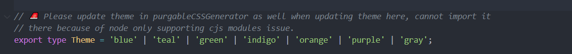 @anuraghazra Yes, we have a script that extracts the classes that are using the theme variable and then generates purgeable classnames with all possible themes from them. Also, I am not sure if you remember it, but we also had a conversation regarding this on Twitter 😁, the repo wasn't public back then, so I wasn't able to share the code.