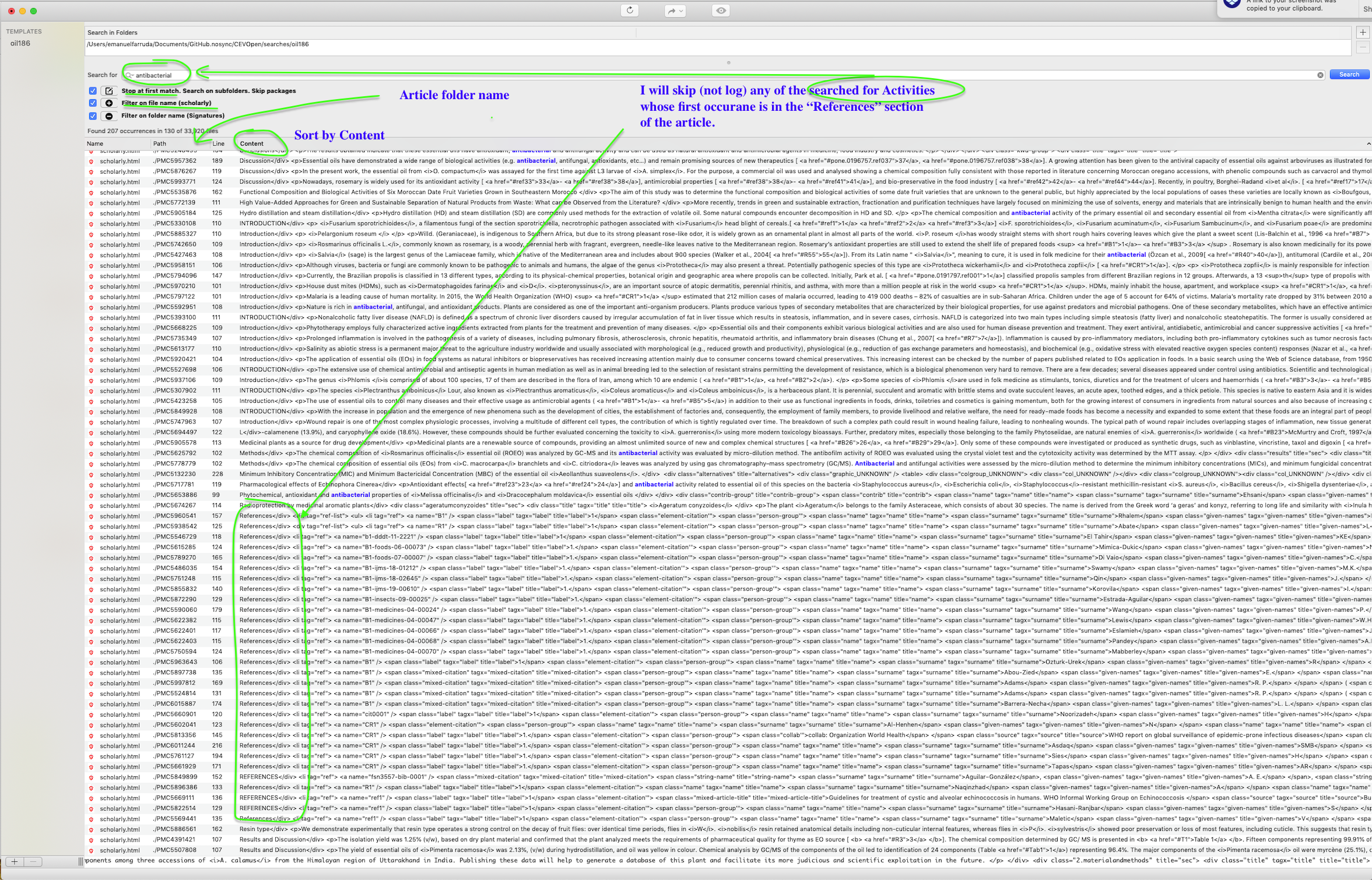Use case: I'm using VisualGrep to search hundreds of research papers for terms such as "antibacterial".